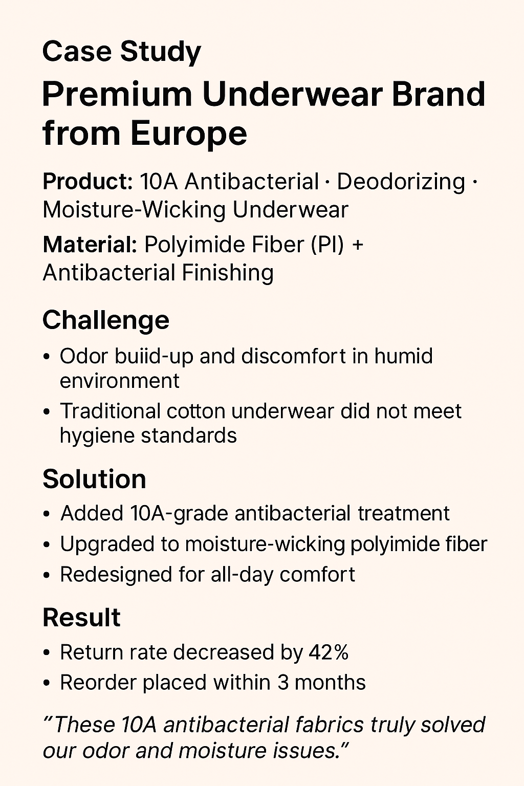 We supply functional intimate apparel made of polyimide fiber, featuring long-lasting antibacterial properties and far-infrared microcirculation heat therapy.